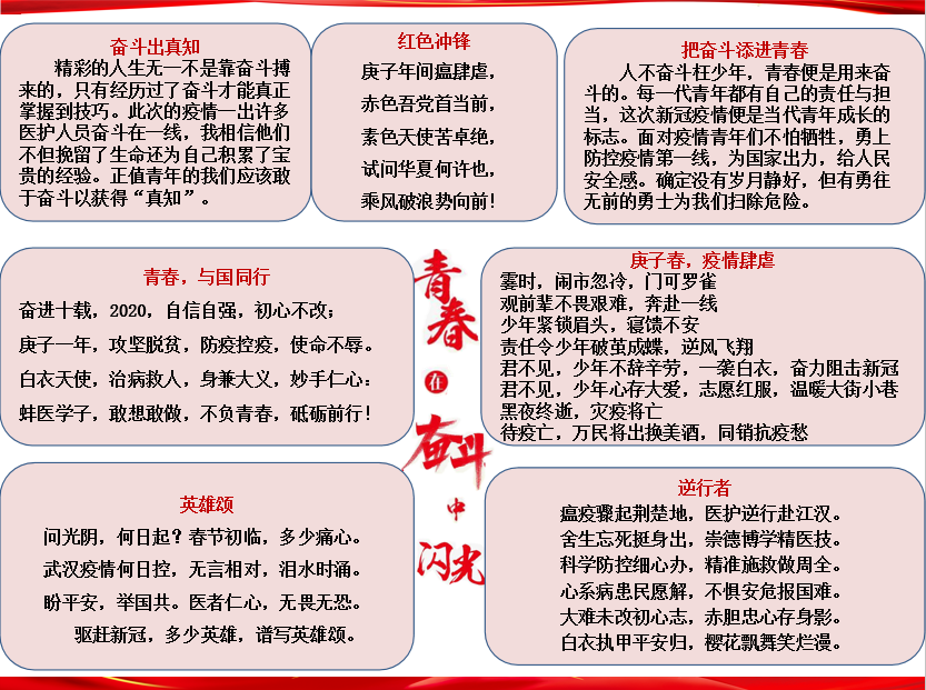本次活动的开展为学院疫情防控宣传教育增加了富有特色的资源和素材,有效地提高了全体学生疫情防控意识和文化素养,凸显了青年学生内心奔涌着的爱国情怀和肩负的责任与担当。