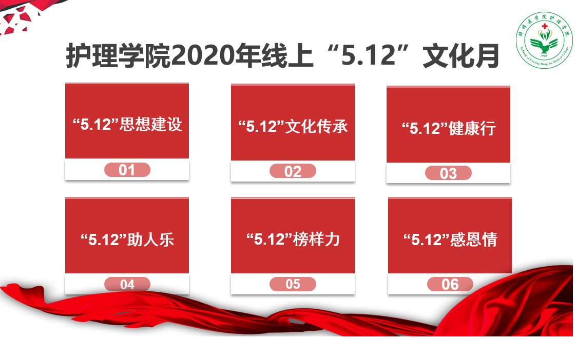 “同心共抗疫”,为庆祝第109个国际护士节,宣传、培育和弘扬护理文化精神,丰富学生线上文化生活,营造文明和谐、团结进取、奋发向上的抗疫氛围,以实际行动践行社会主义核心价值观,太阳成集团官方网站于4月28-5月31日期间开展线上“5·12”文化月活动。