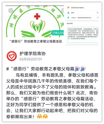 活动通过线上线下相结合的方式进行,全院学生广泛参与其中。感恩行通过做家务、为父母下厨、自制小礼物、写信、发信息等形式进行,以此表达对父母的爱,感恩父母的养育之恩与辛勤付出,懂得理解他人的不易。