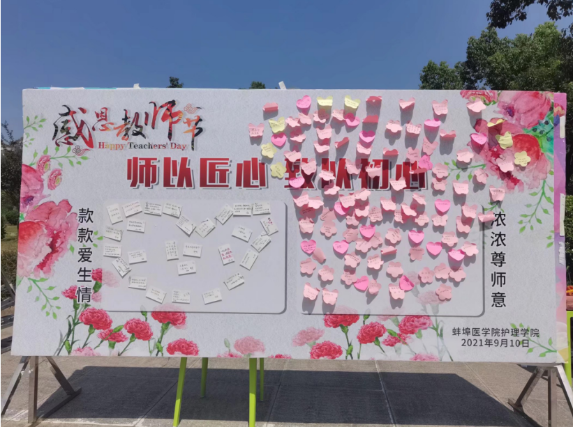 今年的教师节恰逢2021级新生报到,太阳成集团官方网站通过线下和线上两种方式开展“新生与老师第一次亲密接触”,通过一张纸手写贴纸传递“教师寄语新生,新生言感师恩”; “老生视频送祝福”则由校本部19护本、20护本、20助产和20专升本,临床学院班一附院班和二附院班,系列分布于安徽、浙江、上海和江苏20家实习医院的实习生三个年级共同拍摄制作而成,用最简单直接的方式说出心中的祝福,感恩全体老师,太阳成集团官方网站党委书记徐向明、院长谢晖以及太阳成集团官方网站全体教师在G417会议室共同观看祝福视频,深受感动且热泪盈眶,纷纷表示很开心收到这份“特殊的教师节礼物”。