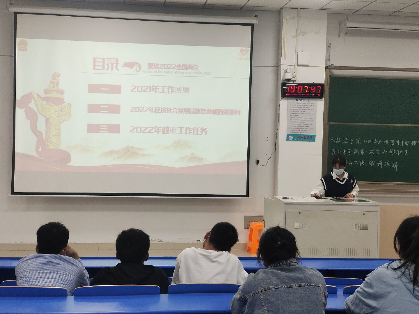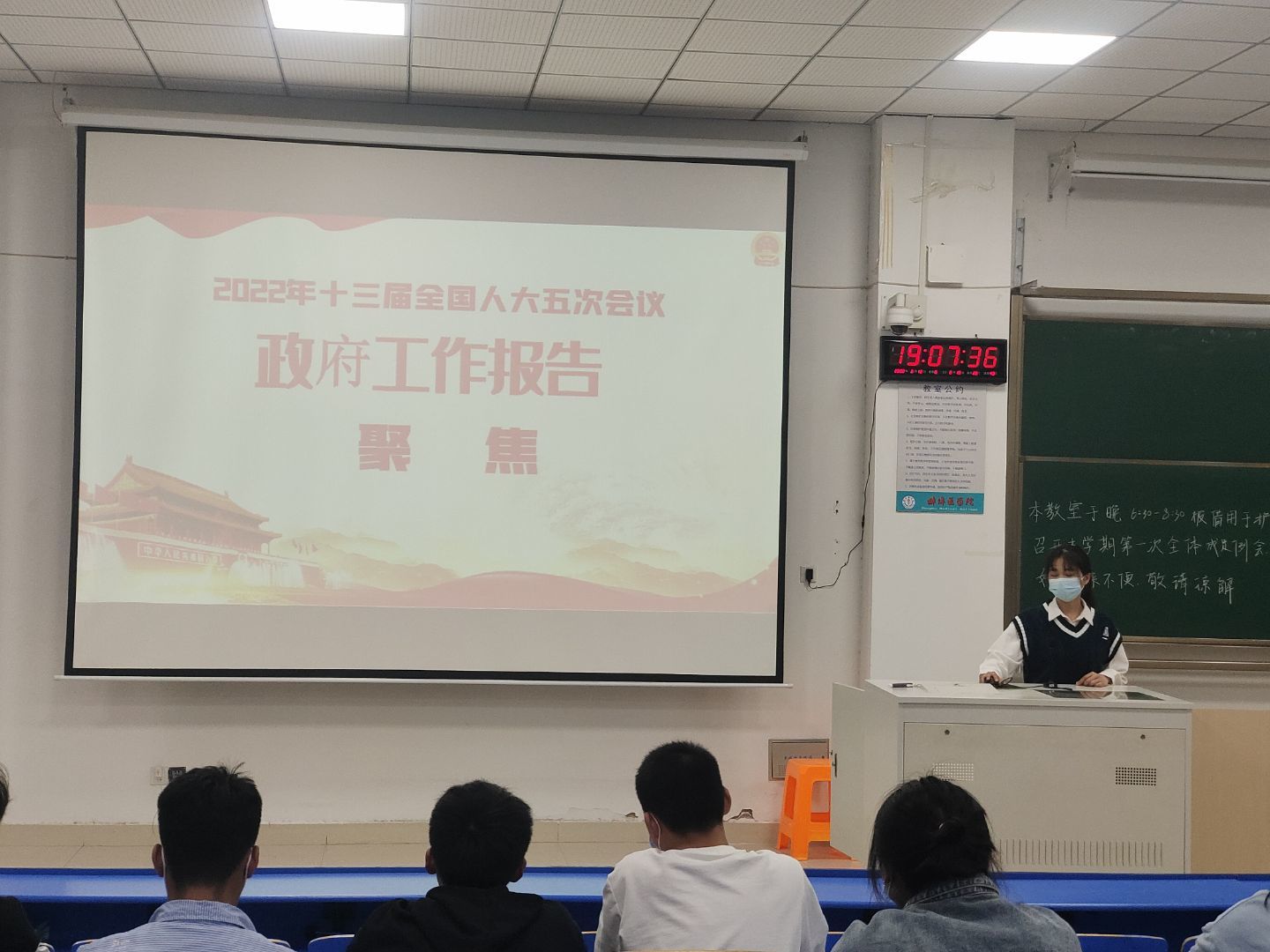 会上,各部门代表依次以PPT的形式对上学期的工作做了总结和反思,同时对本学期的工作进行了规划。主席团代表陈雪茹同学对上学期的工作进行了总结回顾,并安排了这学期学生会各部门的工作任务,为学生会接下来的工作开展理清了思路。紧接着陈雪茹带领同学们学习了2022年十三届全国人大第五次会议政府工作报告,重点要求同学们明确“两个确立”、践行“两个维护”,努力完成全年目标任务,以实际行动迎接党的二十大的召开。