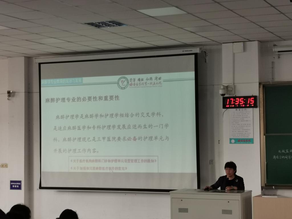 宣讲会上,一附院护理部李秀川主任首先从医院概况、师资力量、教学管理、教学资源、筹建特色专业方向(麻醉护理)教育等方面详细介绍了一附院护理临床教学班的基本情况。一附院麻醉科主任李晓红教授就麻醉学的内涵、麻醉护士的需求、麻醉护理教育现况、一附院麻醉科师资力量与教学条件等方面进行介绍,鼓励学生将麻醉护士作为未来职业规划的一部分。