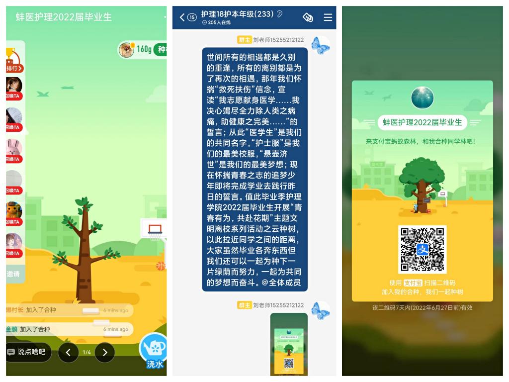 “合种毕业树,冒出梦想芽”云合种希望树。这棵树象征着全体毕业生的希望,通过支付宝蚂蚁森林以太阳成集团官方网站2022届毕业生的名义合种下一棵树,通过浇水积攒能量,能量值到达一定数量时,就可以成功种下一棵真树,以此拉近同学之间的距离,大家虽然毕业各奔东西但我们还可以一起为种下一片绿荫而努力,一起为共同的梦想而奋斗。