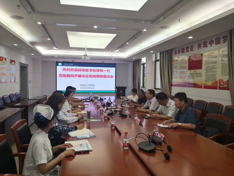 7月6日下午凤阳县人民医院会上,党委书记徐娜重点介绍了医院的建设和发展,人才培养和需求、校院合作等方面的内容,会后马哲锐书记一行在张云峰院长等陪同下实地走访参观医院医疗环境和设施,重点参观了内科大楼的肿瘤放射科/血液内科病区。