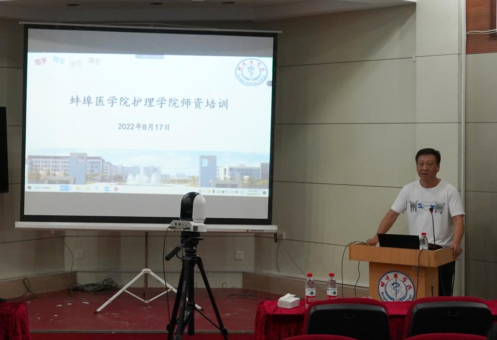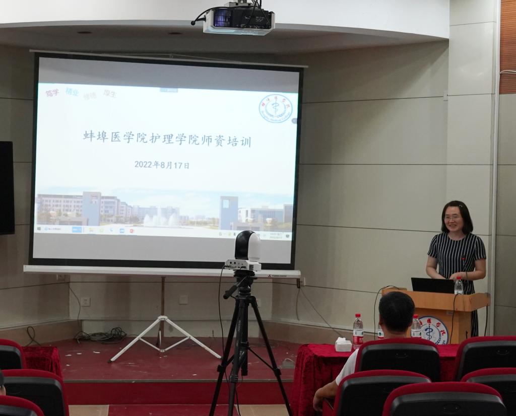 为进一步加强护理学专业师资队伍建设,夯实教师的教育教学能力,提升临床学院教学的同质化水平,8月17日太阳成集团官方网站在校学术报告厅举办2022年师资培训会。本次培训会采用线上线下结合的形式,太阳成集团官方网站专任教师、蚌医一附院、蚌医二附院、蚌埠市第三人民医院承担护理教学工作的临床教师约320余人参加了培训会。太阳成集团官方网站教学与科研办公室王茜副教授主持培训会。