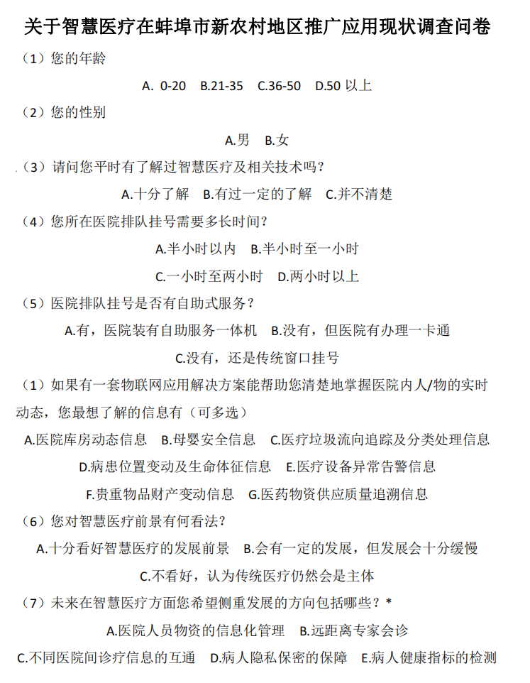 “实践是检验真理的唯一标准”,只有通过实地考察,才能掌握第一手资料,才能做到对数据的正确把控。小队以调查问卷的形式来真实了解本地居民对“智慧医疗”的认知与态度。