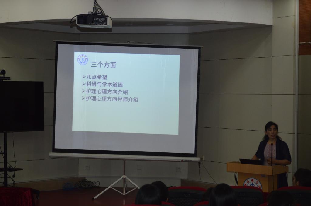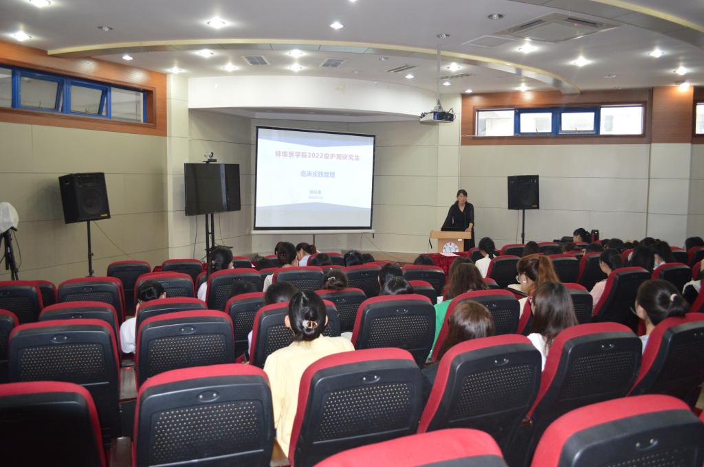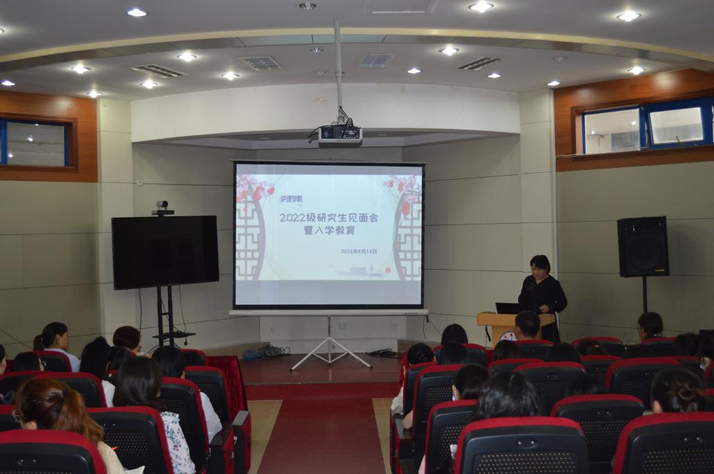 9月14日上午,太阳成集团官方网站在校学术报告厅举行2022年级护理学研究生见面会暨入学教育。学院领导、一级/二级学科负责人、培养基地管理人员和2022年级全体研究生参会,会议由太阳成集团官方网站学科与研究生管理办公室朱宁宁教授主持。