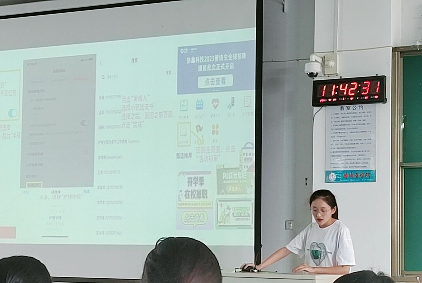本次培训分为pu口袋活动申请流程介绍、智慧团建的常见问题、志愿汇的使用以及基础团务工作介绍四部分。首先,高皖肖对团务工作的纪律问题、团的常规工作、青年大学习以及智慧团建的常见问题进行了介绍,并补充强调了完成学时的重要性。其次,赵云凤、2021级团支书张京分别详细介绍了志愿汇和pu口袋的使用,对于活动发布、签到和系统操作、第二课堂成绩单申请等相关问题进行了分析和解释。