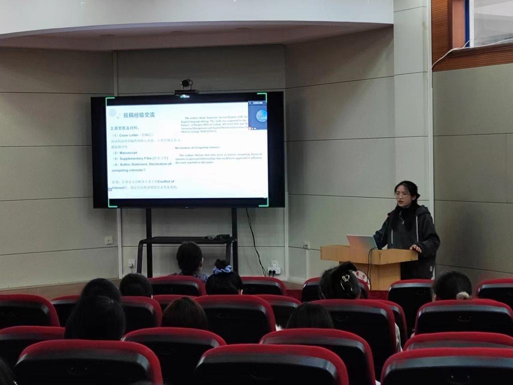 2020级赵伟同学根据国奖的评选要求及流程,分享了各类参赛及专利发明的经历,向大家推荐了常用的文献阅读与管理、统计数据处理及绘图等软件,并分享了自己科研学习的经验,建议重视英文文献的阅读,培养良好的科研素养。2020级范颜颜同学结合自身的学习科研情况,和同学们分享了自己SCI期刊投稿经验,还建议大家平时多与导师和师兄师姐沟通,注重团结协作,要勇于创新,同时做好三年的科研计划,做到有的放矢。在场的同学们积极踊跃向两位分享者进行提问。
