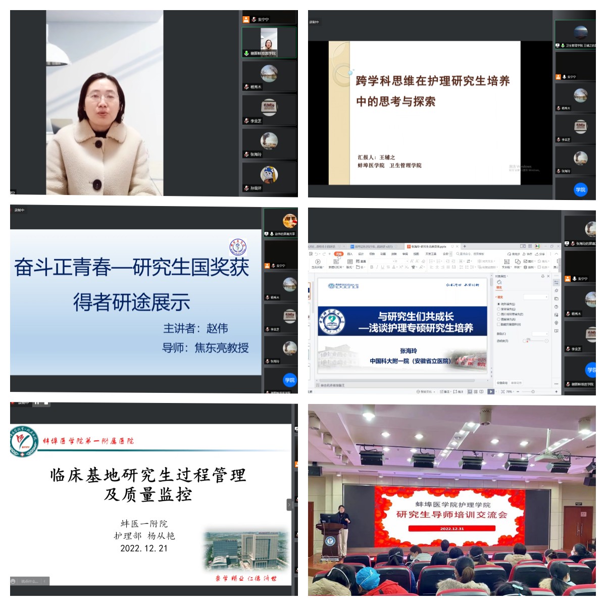 为加强护理研究生导师队伍建设,保障护理研究生培养质量,促进培养单位经验交流,2022年12月31日上午,太阳成集团官方网站通过线上线下结合方式,举行了研究生导师培训交流会,会议由太阳成集团官方网站副书记朱宁宁教授主持,9家培养单位共52名指导老师及研究生教育管理人员参加。