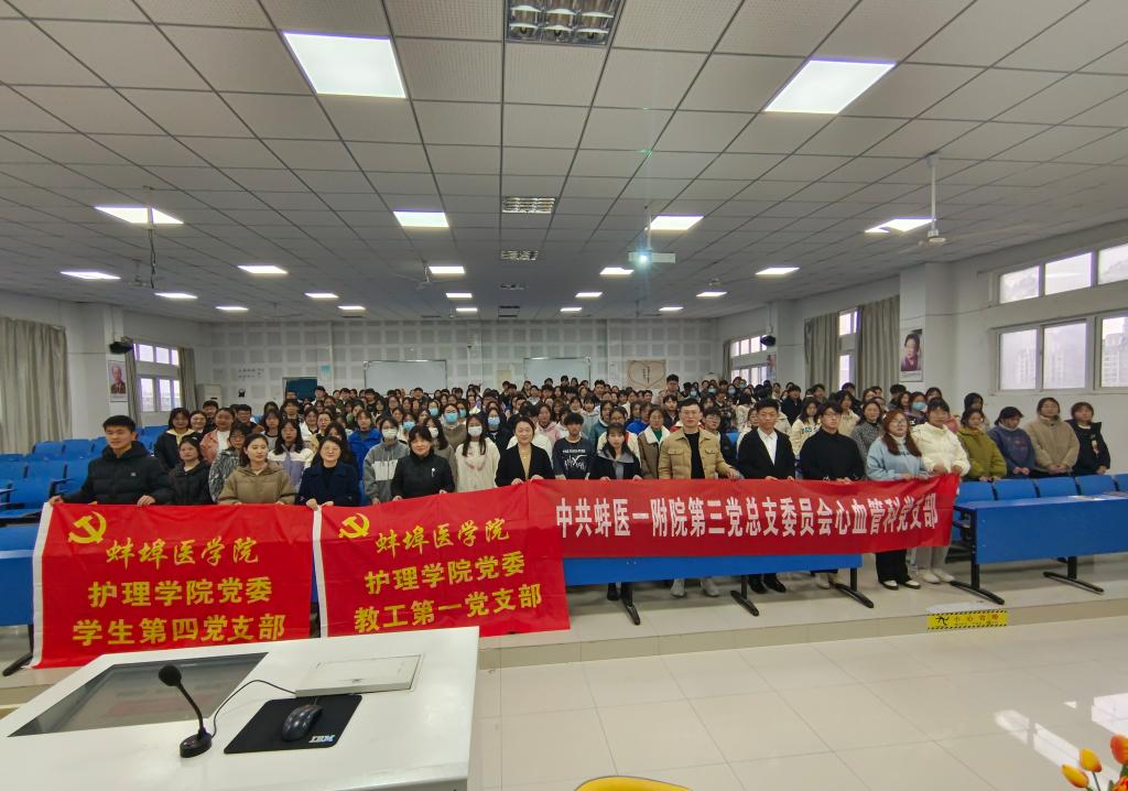 “在满地都是六便士的地上,希望你可以抬头看见月亮。”王辉老师是我校2009级本科护理学专业毕业生,2014年毕业后进入蚌医第一附属医院工作至今,他和同学们分享了参加援藏抗疫和援渝抗疫的经历,以视频的方式介绍了护士的日常工作,让同学们对护士的工作有了具象化的了解。(图二)(图三)