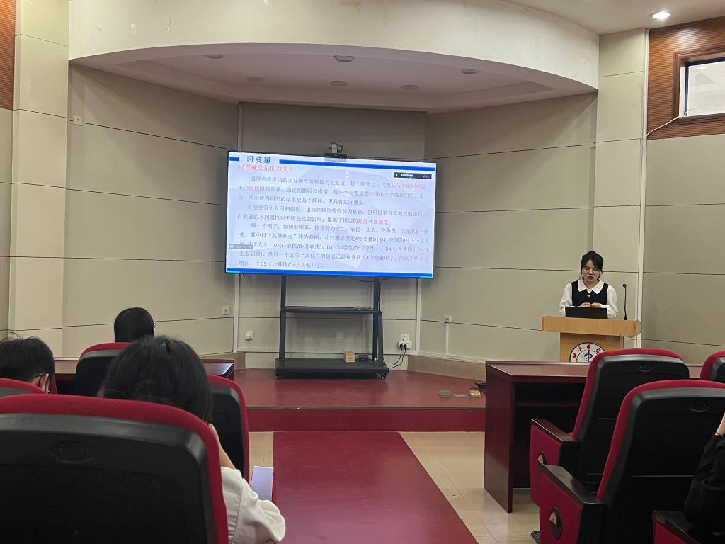 2021级研究生何梦雨以“Meta分析之多网站检索”为主题,围绕meta分析的定义、制定检索策略、多网站检索三方面讲述关于如何开启meta分析之旅,让大家对meta分析有了一定的了解。2021级研究生张梦以“哑变量设置”为主题,围绕什么是哑变量,设置哑变量的意义,什么情况下需要设置哑变量,最后还介绍了哑变量在logistic回归分析中应用,以及在SPSS中如何操作,让大家对哑变量设置的实践有了进一步的认识。