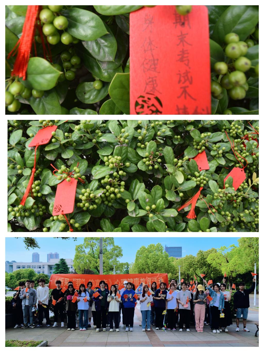 “听”见我的声音“祈愿期盼”。每个人的心中都有期望到达的“彼岸”,5月8日在校西文化广场开展祈愿期盼活动,激发同学向上进取。愿望系在了树上,梦想便在心里开花。一张张精巧真挚的福牌在风中飘荡,一颗颗炽热赤诚的心脏在共鸣回响。