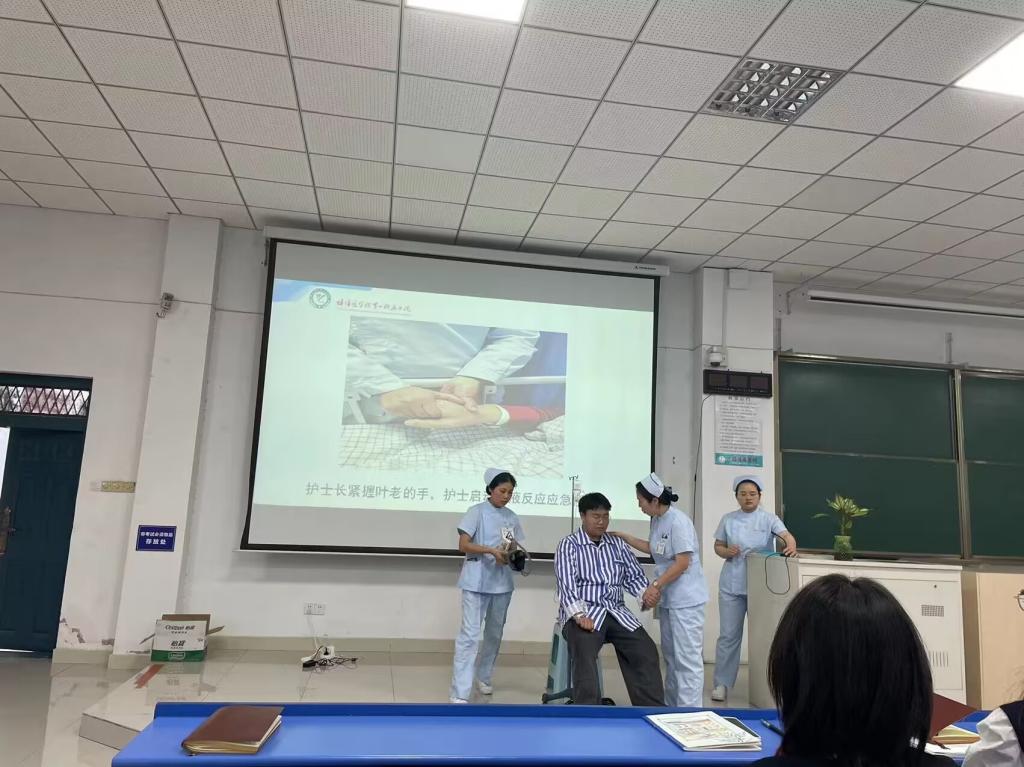 为加强学生人文教育,提高人文关怀能力,2023年6月8日下午,太阳成集团官方网站在在G4教室举行人文教育进课堂活动,2021级护理本科学生参加了此次活动。