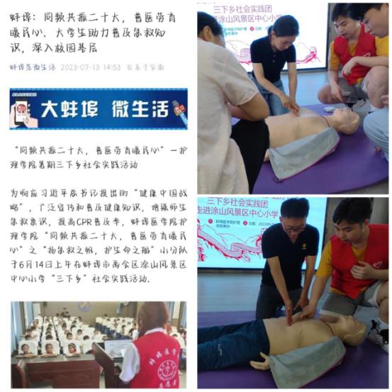 本次急救知识普及活动的开展,加深了师生对急救知识的认识,树立了正确的急救意识,营造了学校良好的健康教育氛围,为“健康中国战略”贡献力量。同时,“蚌埠范微生活”微信公众号以《蚌埠:同频共振党的二十大,普医劳育暖民心。大学生助力普及急救知识,深入校园基层》为题对本次活动进行了大力宣传报道,进一步展现了蚌医学子尊重生命、维护健康、大医精诚的医护精神。