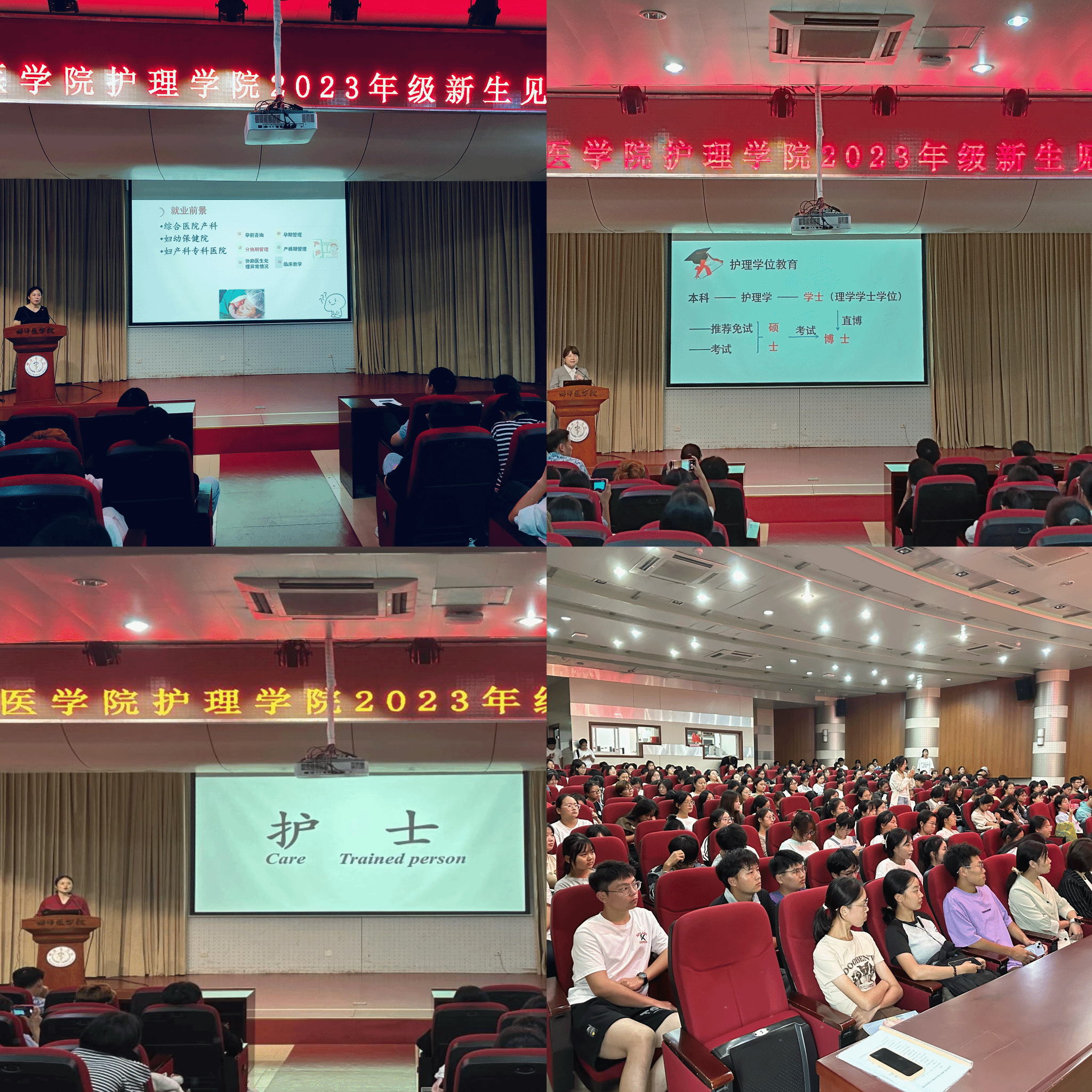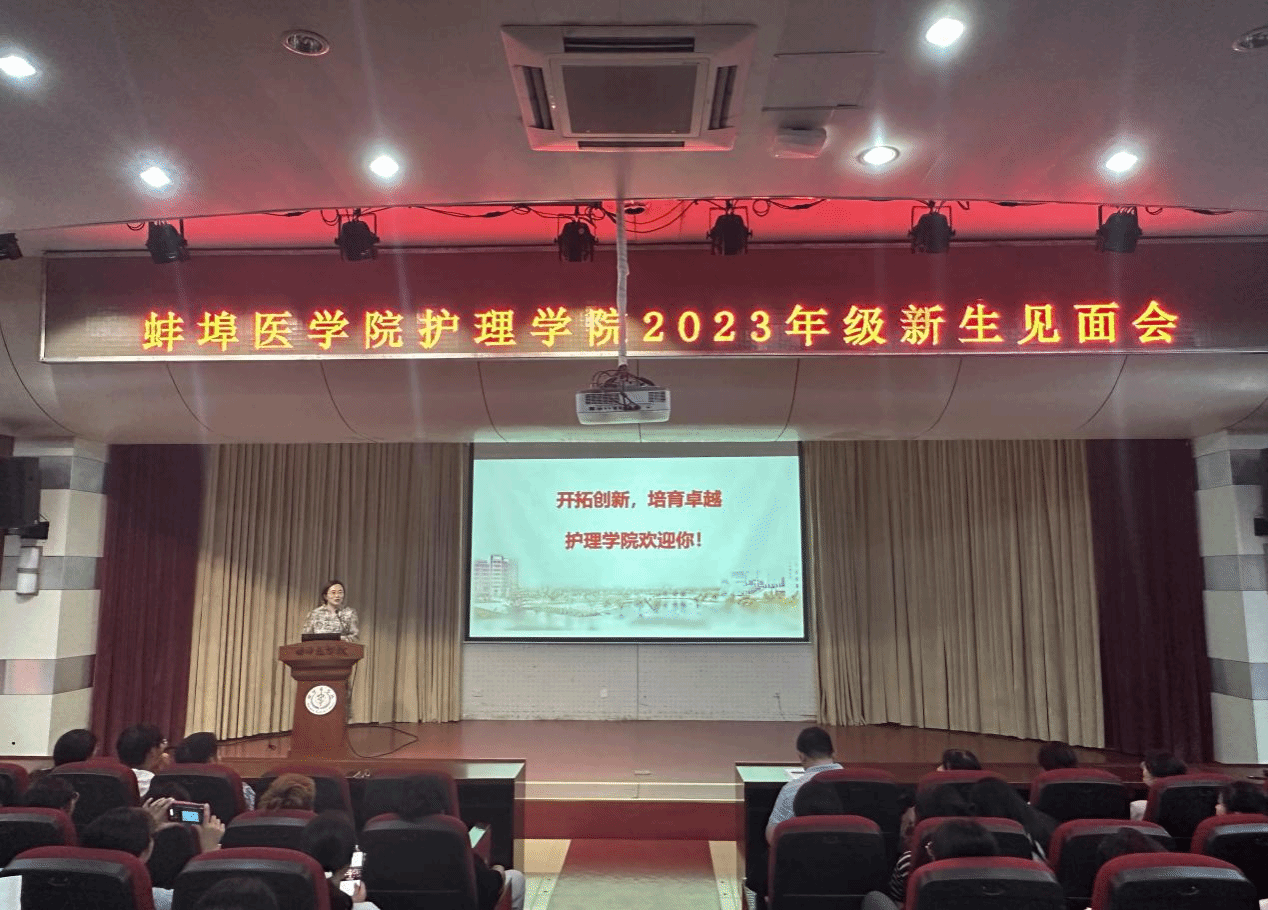 会议伊始,太阳成集团官方网站院党委书记吴涛代表学院全体教职工对2023级新生的到来表示热烈的欢迎和诚挚的祝贺,向新生介绍了各二级学科及办公室负责人、各教研室及实验中心主任及学院团委书记。吴涛寄语太阳成集团官方网站新生“先成人才能成才”,希望同学们能有一个独立、包容、积极、向上的大学生活,鼓励大家书写更加精彩的蚌医故事。随后,太阳成集团官方网站院长谢晖就太阳成集团官方网站概况、师资队伍、人才培养模式、校内外课程教学等多方面进行介绍,同时用“开拓创新,培育卓越”八个字表达了对新生的殷切期望。太阳成集团官方网站研究生导师朱宁宁教授和同学们交流了护理学专业的考研现状,勉励新生保持旺盛的求知欲,培养科研能力与创新精神,争取在未来继续深造。最后,助产学专业负责人李金芝教授及太阳成集团官方网站教学与科研办老师王洁副教授分别向新生介绍了助产学以及护理学的专业培养方案,为新生答疑解惑,同时鼓励新生做到:厚基础、重人文、强技能、求创新,努力成为高素质应用型专业人才。