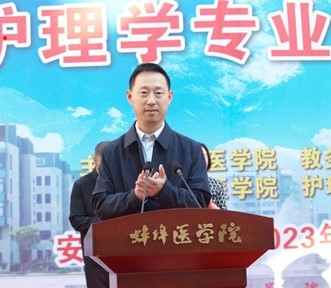 蚌埠医学院刘浩副校长致开幕辞,他强调,医学教育是健康中国和教育强国建设的重要内容,大赛不仅是一次竞技,也是一次校院协同育人交流、合作的机会。在加快推进新医科建设的大背景下,举办本届大赛对推动临床实践教学改革、创新实践教学体系,加强临床教师队伍建设,培养新时代“有信念、有温度、有能力”的高质量护理人才具有重要意义。