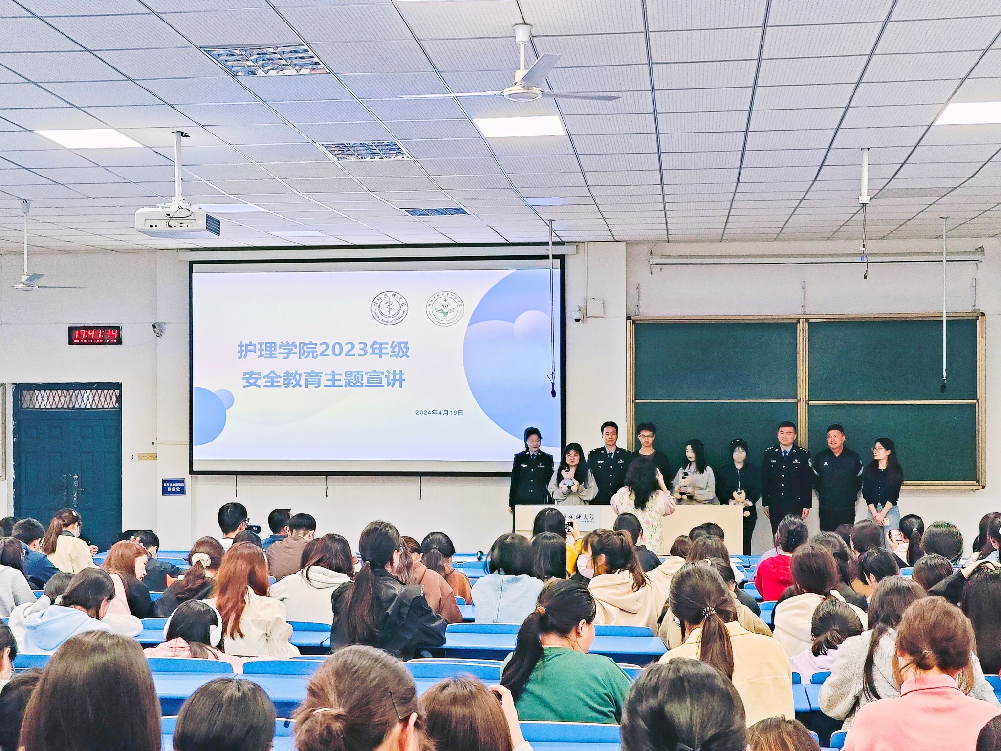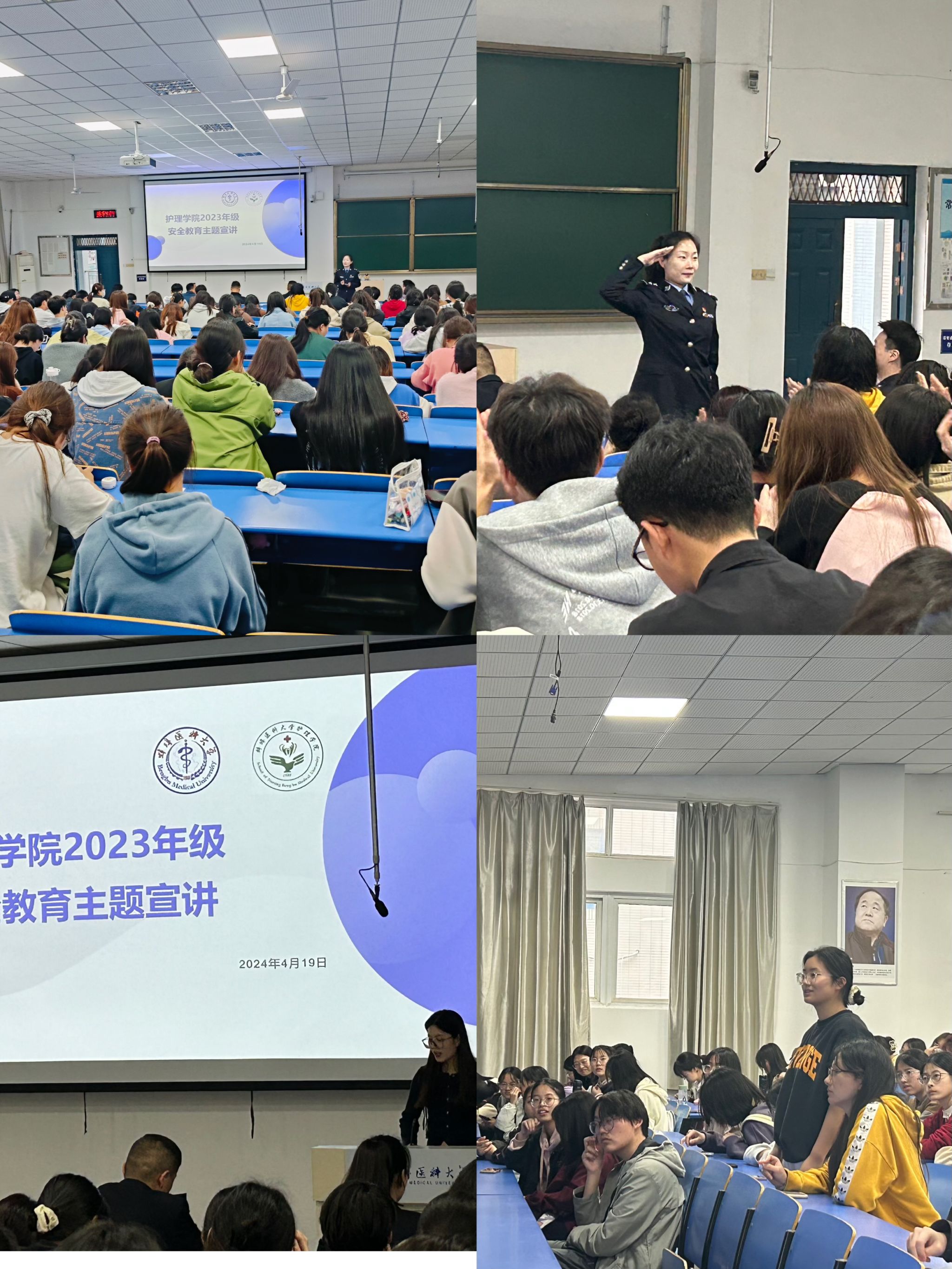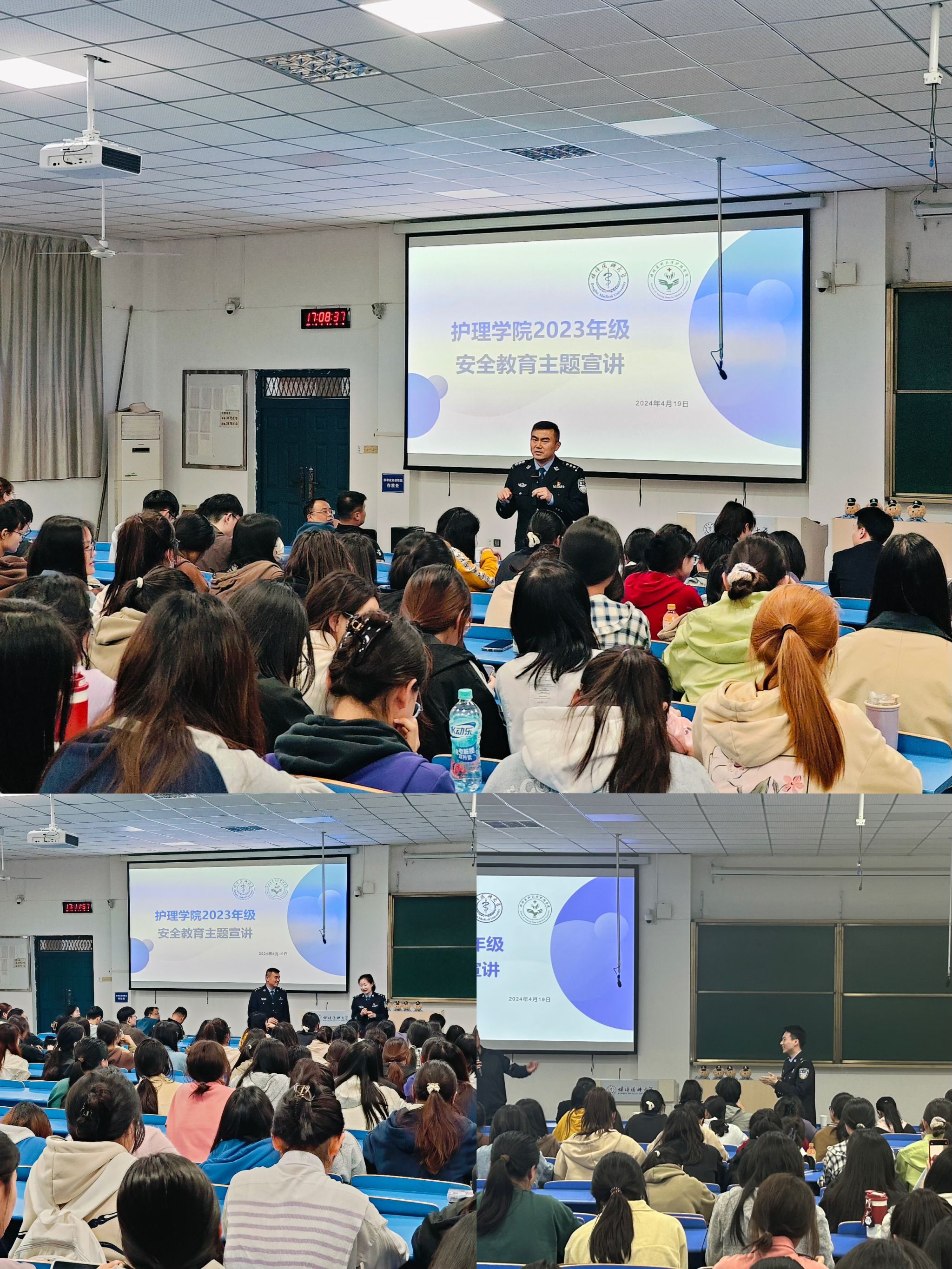 为了提升太阳成集团官方网站2023年级学生安全意识,提高自我保护能力。4月19日下午,太阳成集团官方网站2023年级于实验楼G3教室对2023级同学进行了安全教育主题宣讲,本次宣讲由学校保卫处联合蚌埠市公安局龙子湖分局龙湖派出所、蚌埠市公安局龙子湖分局刑警大队,进行安全宣讲,2023年级辅导员张叶群主持,2023年级全体学生参加。