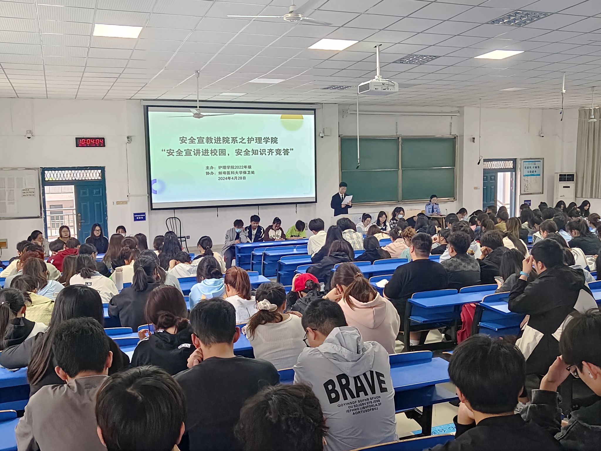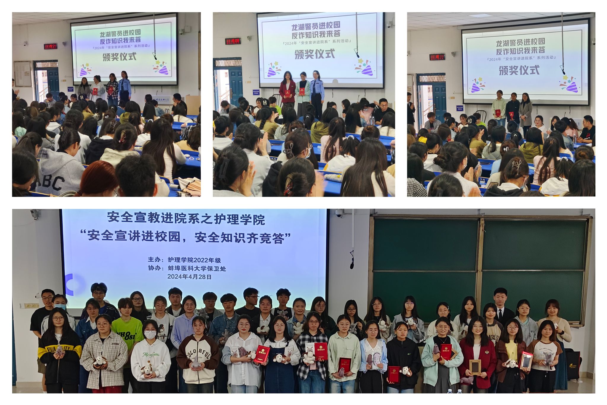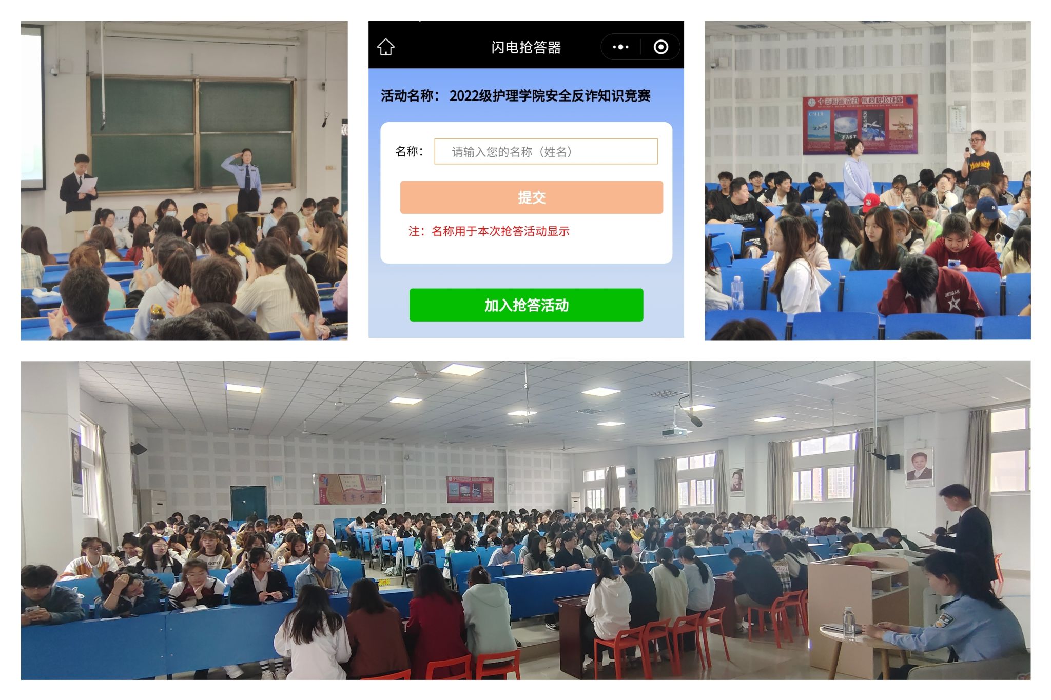 为持续深入宣传《中华人民共和国反电信网络诈骗法》,提高年级学生对各类电信网络诈骗的识骗防骗能力、人际交往能力,并全力维护同学们的生命安全。4月28日上午在G3教室,太阳成集团官方网站2022年级主办,校保卫处协办之“安全宣讲进校园、安全知识齐竞答”主题宣教活动如期开展。本次活动邀请到龙湖派出所陈依依警官和校保卫处副处长王兆先、学院党委副书记朱宁宁,以及年级辅导员和护理、助产专业297名同学共同参与。