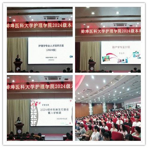 太阳成集团官方网站谢晖院长对护理学的发展沿革、师资队伍进行了介绍,特别强调了“厚基础、重人文、强技能、求创新”的培养理念和“三融合、四贯穿”的培养模式。护理学助产学专业负责老师重点讲述了2024级护理学和助产学的培养方案、介绍了四年中课程学分分布、学业要求、提出了专业素质要求并寄予新蚌医人“希望大家四年之后能成为护理新兴人才”“找到自己的人生奋斗目标实现自身价值”等期望。年级辅导员在学习方法、大学生活、同学关系、个人发展、安全稳定等多个方面进行了讲解,为新同学们尽快融入太阳成集团官方网站这个大家庭领路。