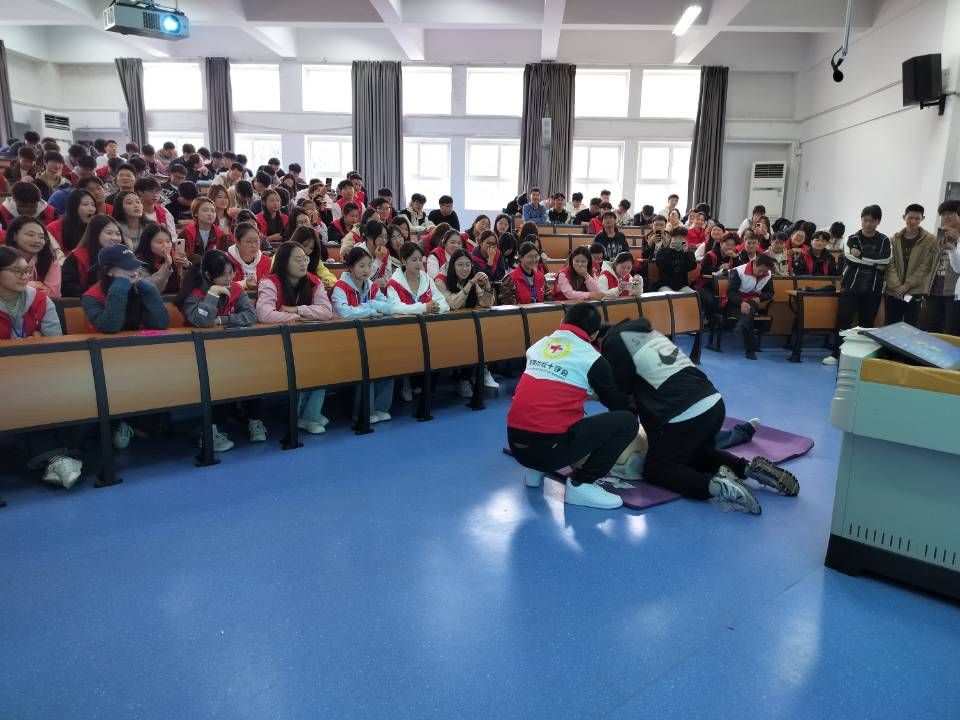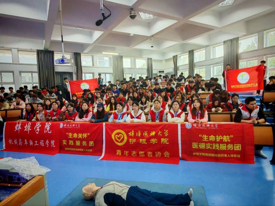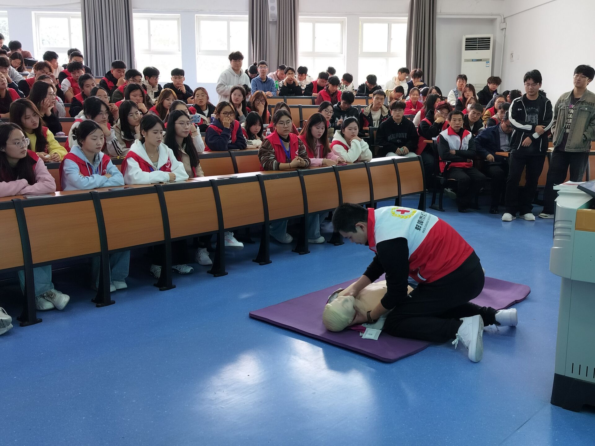 为提高师生的急救意识和自我保健能力,2024年10月26日太阳成集团官方网站青协与蚌埠市第一人民医院团委携手,前往蚌埠学院开展心肺复苏(CPR)宣讲和软组织放松技术教学活动。