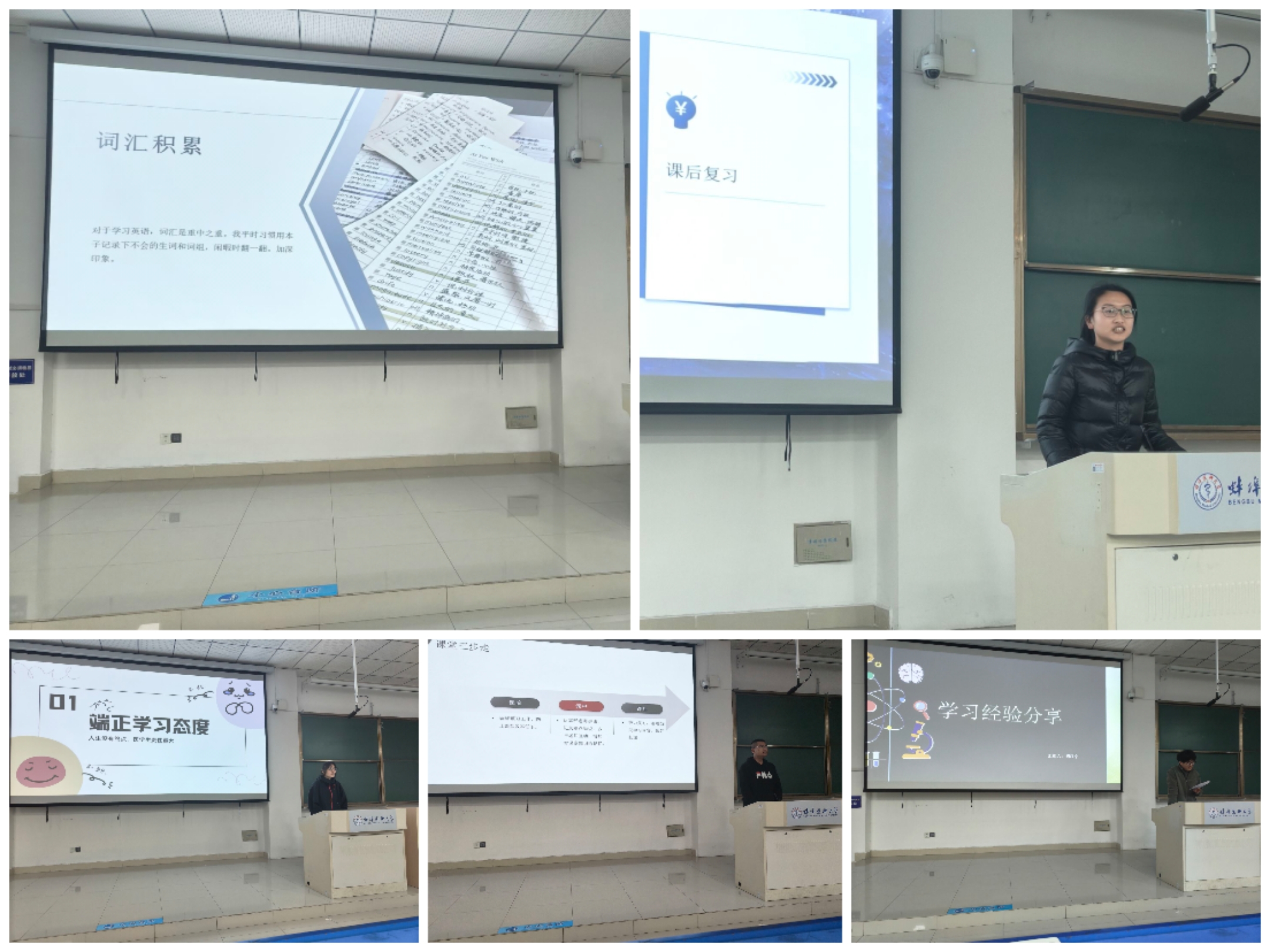 会上,首先有5位成绩优异的同学依次分享学习经验。包括:自主学习的重要性;明确目标,掌握预习复习技巧;课堂互动,提升听课效率;端正学习态度,克服拖延;制定计划、合理利用资源;推荐了英语学习的优质APP及提升学习兴趣的方法等。