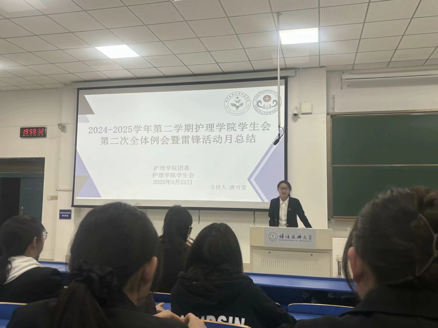 在会议上,主席团成员陈搏对下一阶段的任务进行了详细规划与安排,明确了后续工作的方向,并鼓励全体成员继续保持积极的工作态度和昂扬的奋斗精神。随后,主席团成员汪诗宇主持了雷锋精神分享会,带领大家学习雷锋的生平事迹及其时代内涵,同时总结了学雷锋活动月期间的志愿活动,包括社区义诊、实践交流和知识答题等。这些活动不仅提升了同学们的服务意识和专业技能,还在社会上传递了正能量,赢得了广泛的好评。