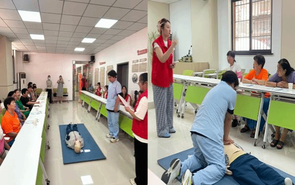 活动现场,志愿者们首先向居民发放了图文并茂的宣传单,内容重点包括心肺复苏(CPR)和海姆立克急救法的操作要点、适用场景以及注意事项等实用急救知识。随后,示教者通过心肺复苏假人模型,用通俗易懂的语言详细讲解了CPR的操作流程,包括如何判断患者意识、正确实施胸外按压、开放气道及人工呼吸等关键步骤。讲解过程中,居民们认真聆听,对不明白的地方积极提问,现场互动氛围热烈。
