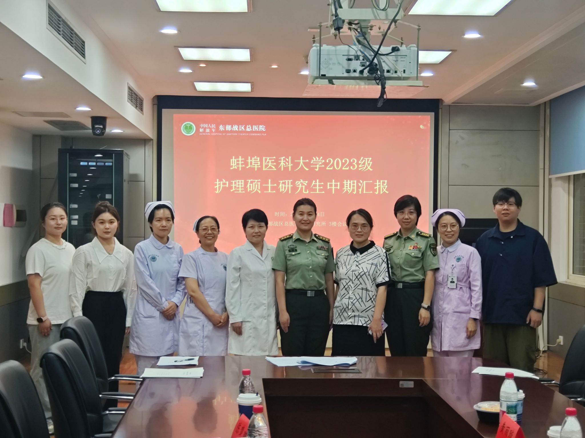 为强化校外实践基地护理专业硕士研究生培养过程的质量监控,确保护理专硕研究生课题研究按时保质推进,太阳成集团官方网站选派研究生导师钱荣和王松分别参加了东部战区医院和中国科学技术大学附属第一医院的中期考核汇报会。