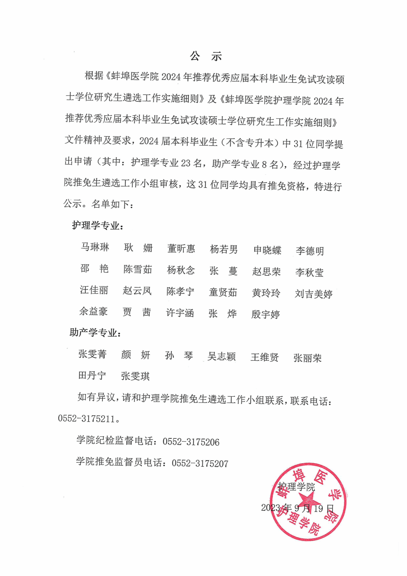 公示 太阳成集团官方网站2024年推免工作实施细则