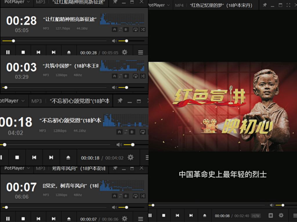 活动中教师党员、学生党员和入党积极份子们分别通过录制音频和视频的形式回眸党史,推动党史学习教育在新时代焕发出勃勃生机,向中国共产党成立一百周年献礼。共征集到“守初心,担使命”、“让“红船精神”照亮新征途”、“不忘初心颂党恩”、“读党史,颂百年大党风雨兼程”、“饮水思源,不忘奋斗路”等多项作品。100年的奋斗、100年的求索、100年的沧桑、100年的巨变,鲜红的党旗始终飘扬在我们奋斗的前方。是党领导全中国人民突破国民党反动派的围剿,穿越二万五千里长征,坚持十四年抗战,打败日本法西斯,凑响三大战役的凯歌。在血与火中诞生的中国共产党以先天下之忧而忧的广阔胸怀,引领各族人民,团结各界人士,在血雨腥风中,终于写下了中国人民从此站起来了的辉煌篇章!