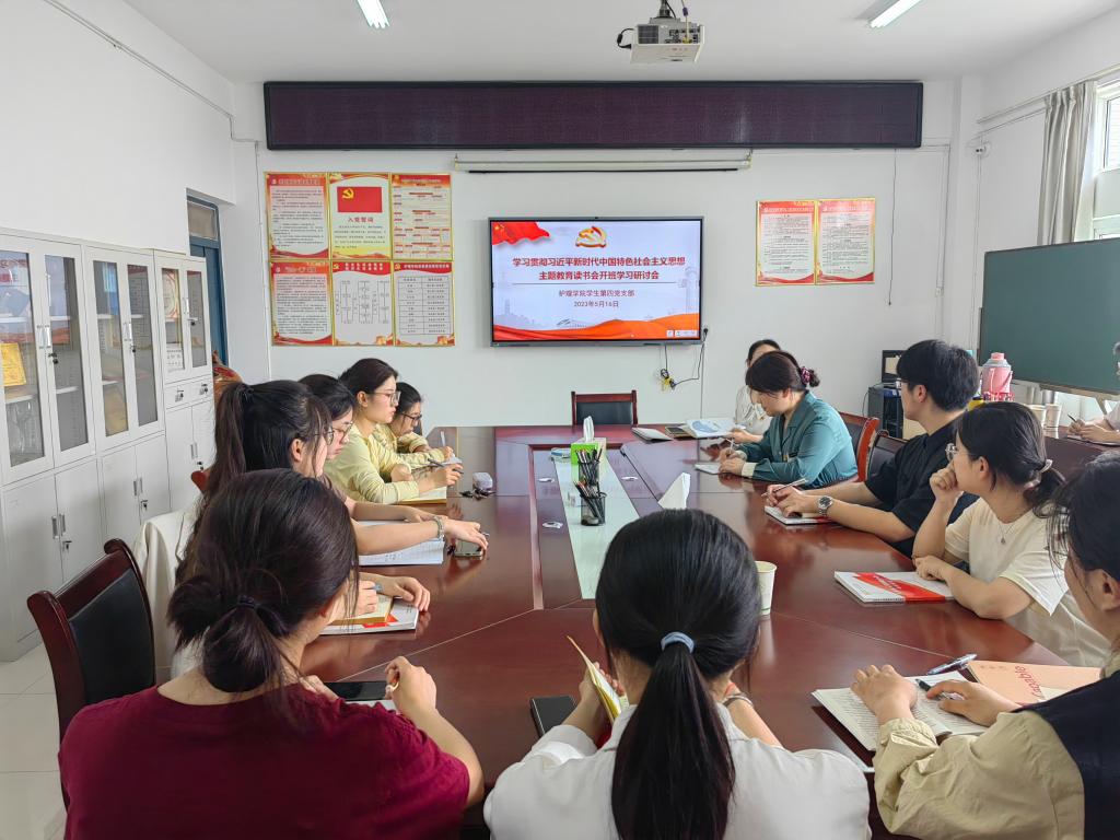 太阳成集团官方网站学生第四党支部学习贯彻习近平新时代中国特色社会主义思想主题教育“阅思乐学”读书会于5月16日中午在G417会议室举行开班学习研讨,学院党委副书记、支部全体党员、年级思政委员及入党积极分子参会。