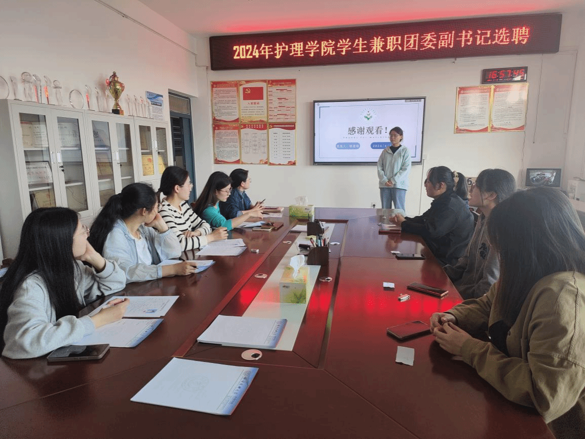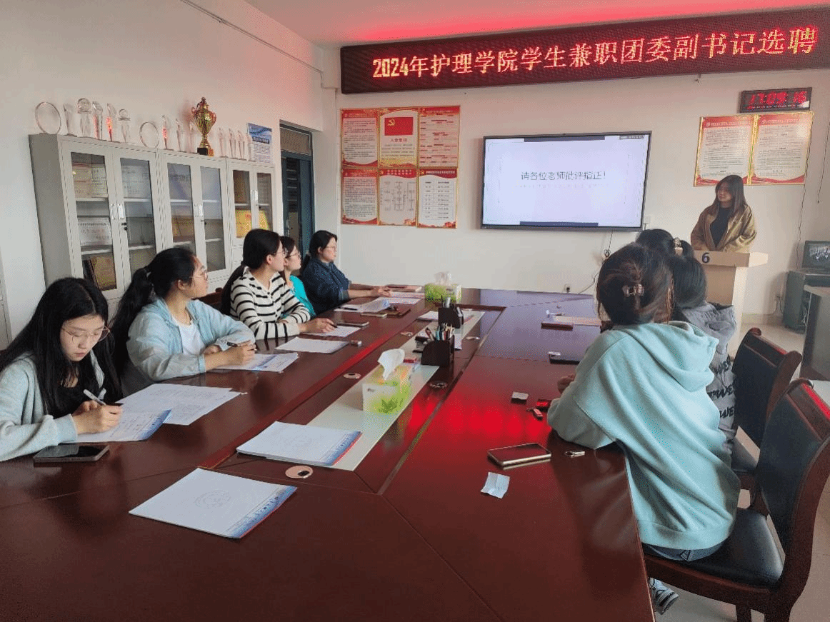 选聘开始前,院团委书记张叶群向参与选聘的同学们讲述选拔方案、选聘流程,并由抽签决定竞选顺序。竞选过程中,各位参与同学也都充分准备,满含热情。在每位同学演讲结束后,两位老师都会提出随机问题以考察同学们的综合素质能力。