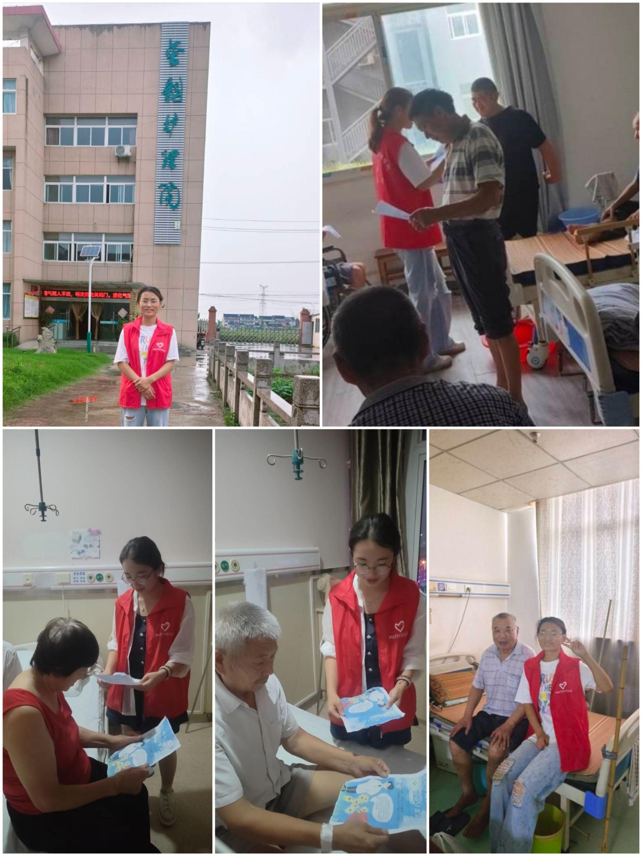 为提高社会对弱势群体的关注,加强老年人安全意识,给老年人送去健康和温暖,并在实践服务中主动接受职业道德教育,切实感受大医精诚的真谛。蚌埠医学院太阳成集团官方网站“青春践行党的二十大,医心向党护万家”党史宣讲团队员走进阜阳市、淮南市、蚌埠市等各地开展暑期“三下乡”社会实践活动。团队成员不仅向养老院内和周边的老年人宣传癌症相关知识并发放宣传单、在乡镇敬老院进行健康宣教,还去到阜阳市三岔路派出所为工作人员进行义诊,并对他们讲授了一些常见病的治疗与预防方法。