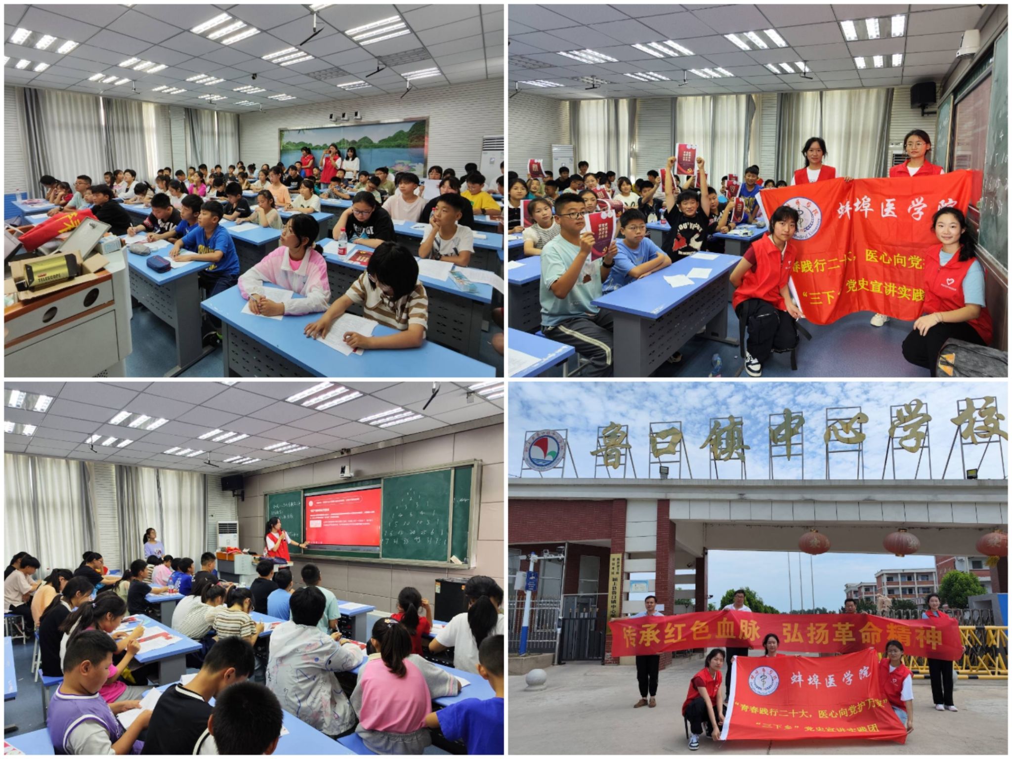 为深入学习贯彻习近平新时代中国特色社会主义思想,传承红色基因,围绕立德树人,培养德智体美劳全面发展的社会主义建设者和接班人,推动党史教育的持续深入。蚌埠医学院太阳成集团官方网站“青春践行党的二十大,医心向党护万家”党史宣讲团于7月6日上午走进鲁口镇中心学校,开展2023年暑期“三下乡”社会实践活动。团队成员先是给同学们分发了党史教育宣传单,之后由队员通过ppt形式为同学们详细介绍了百年来共产党的发展历程,进一步加深青少年对中国共产党的认识,争做担当民族复兴大任的青年。