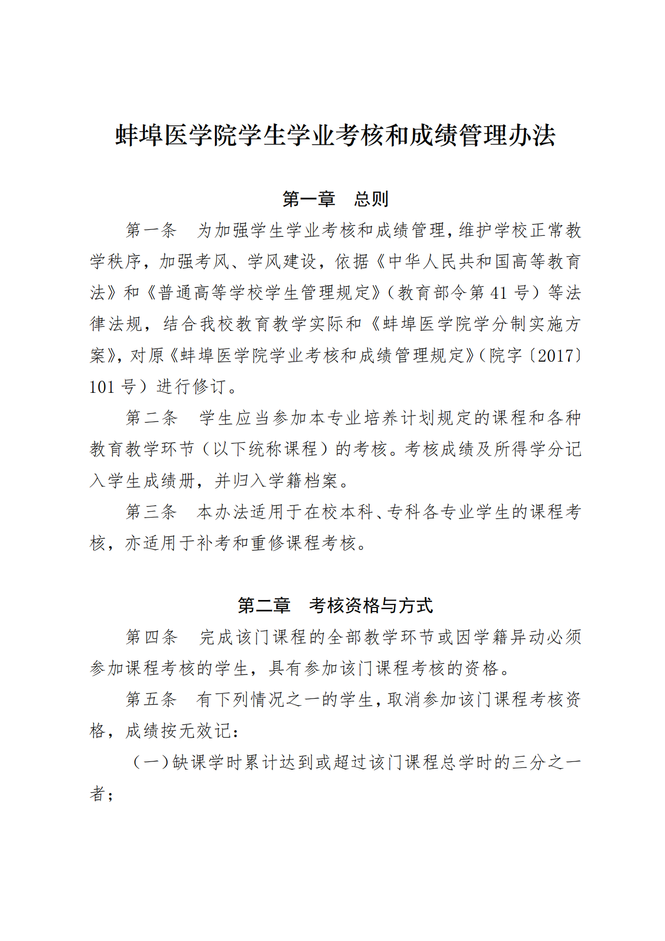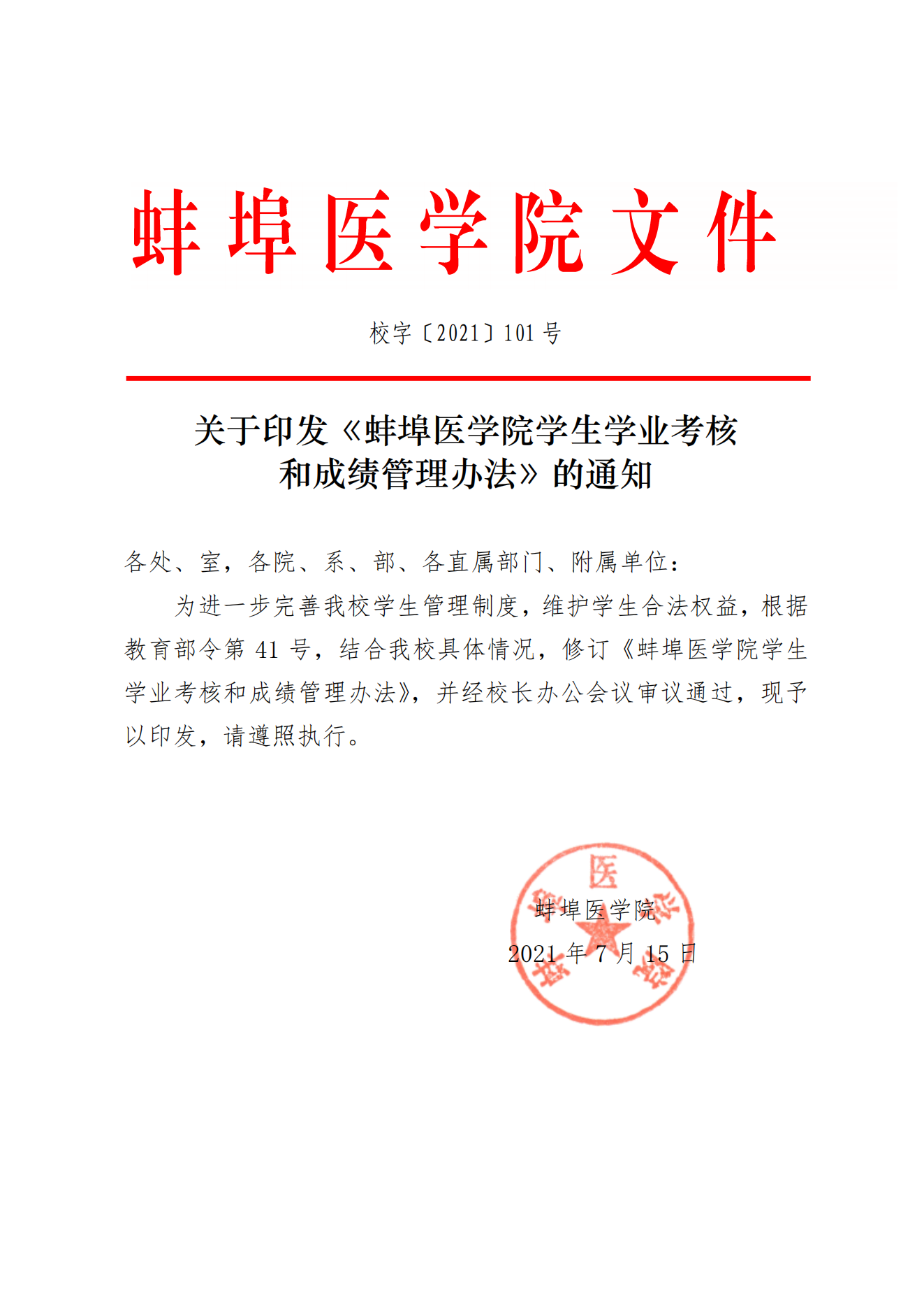 关于印发《蚌埠医学院学生学业考核和成绩管理办法》的通知