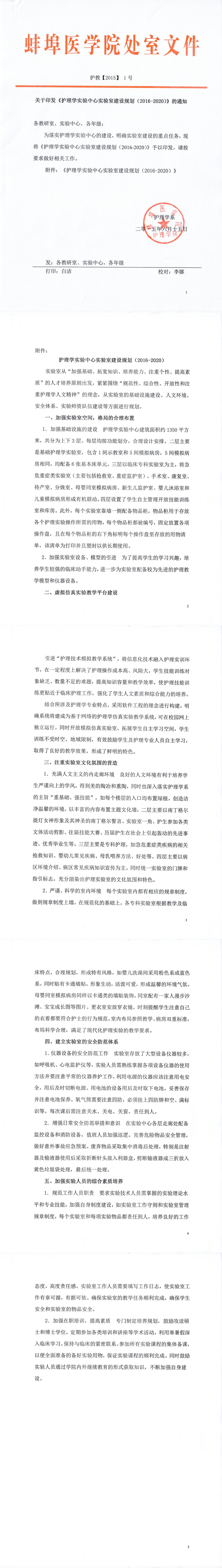 关于印发《护理学实验中心实验室建设规划(2016-2020)》的通知